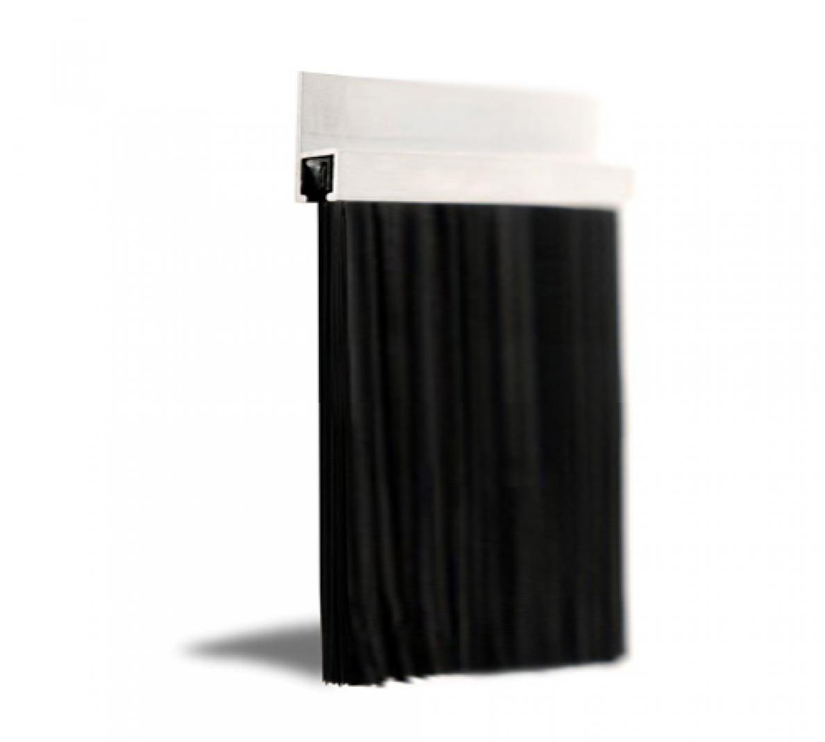 210mm black nylon trim x 2.44m overall length, supplied with 180° aluminium carrier as shown. Also available with 90° & 45° carriers.