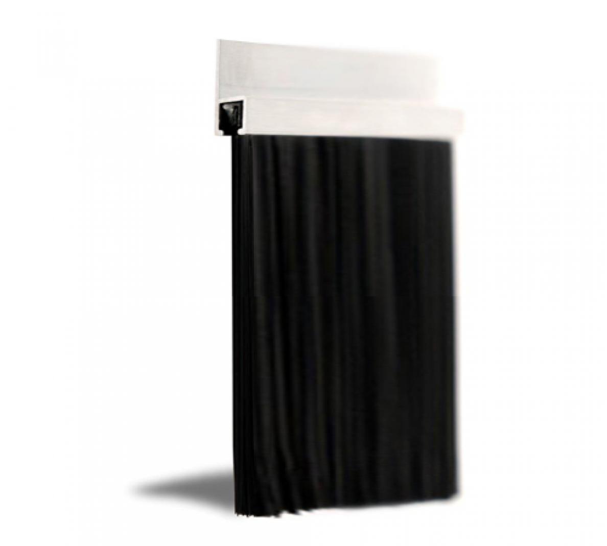 250mm black nylon trim x 2.44m overall length, supplied with 180° aluminium carrier as shown. Also available with 90° & 45° carriers.