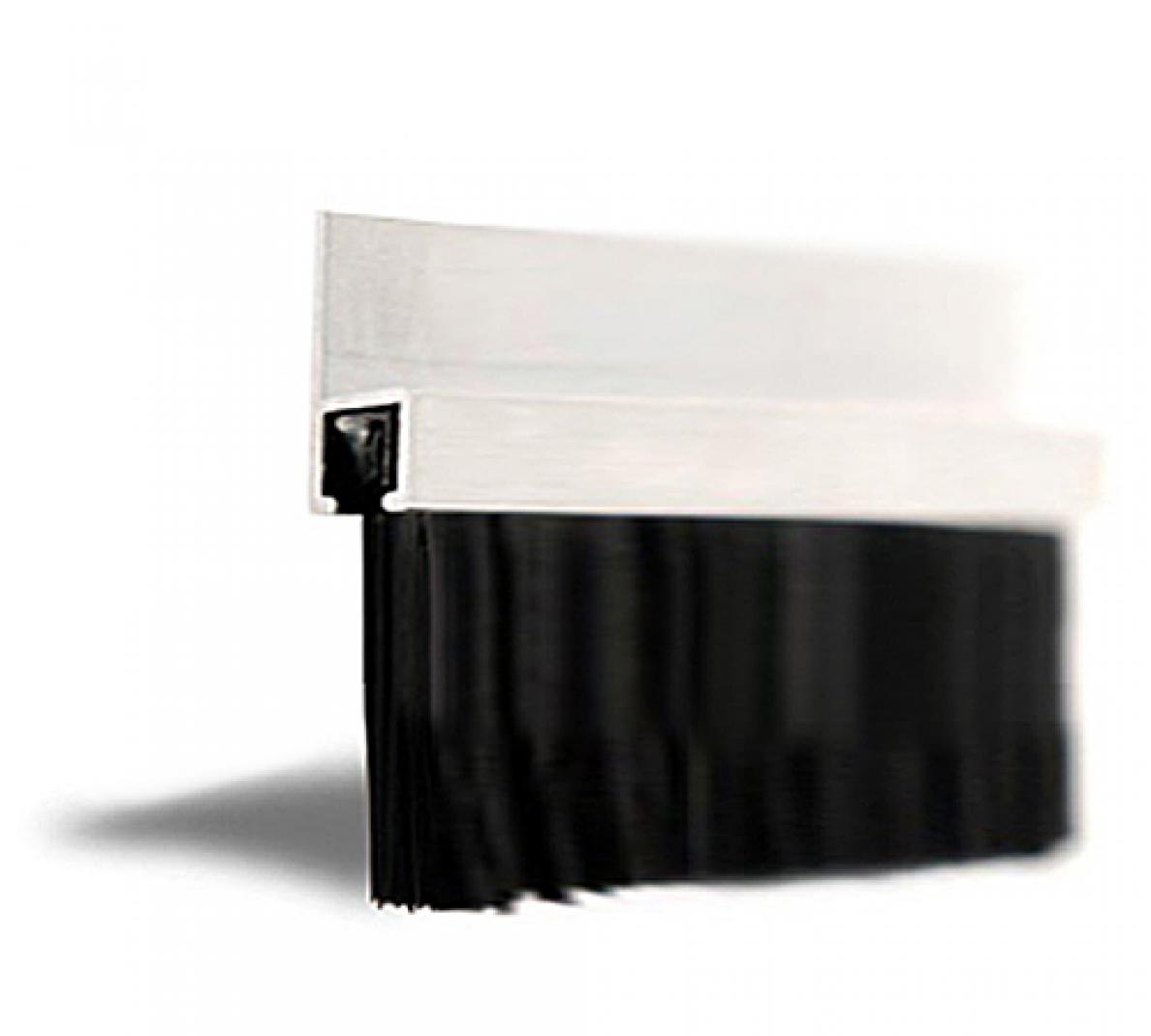 50mm Brush Strip, black nylon filament x 3m overall length, supplied with 180° aluminium carrier as shown. Also available with 90° & 45° aluminium carriers.
