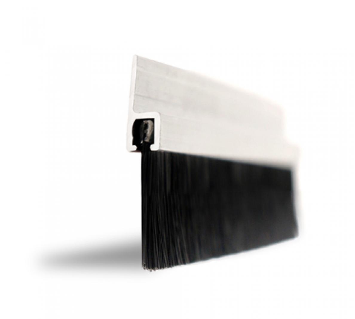 21mm black nylon brush trim domestic draught excluder, supplied with 180° aluminium carrier as shown. Also available with 90° carrier. Don't let draughts be a problem in the home, instead invest in a domestic draught excluder. Also protects against dust, leaves, smoke and pests.